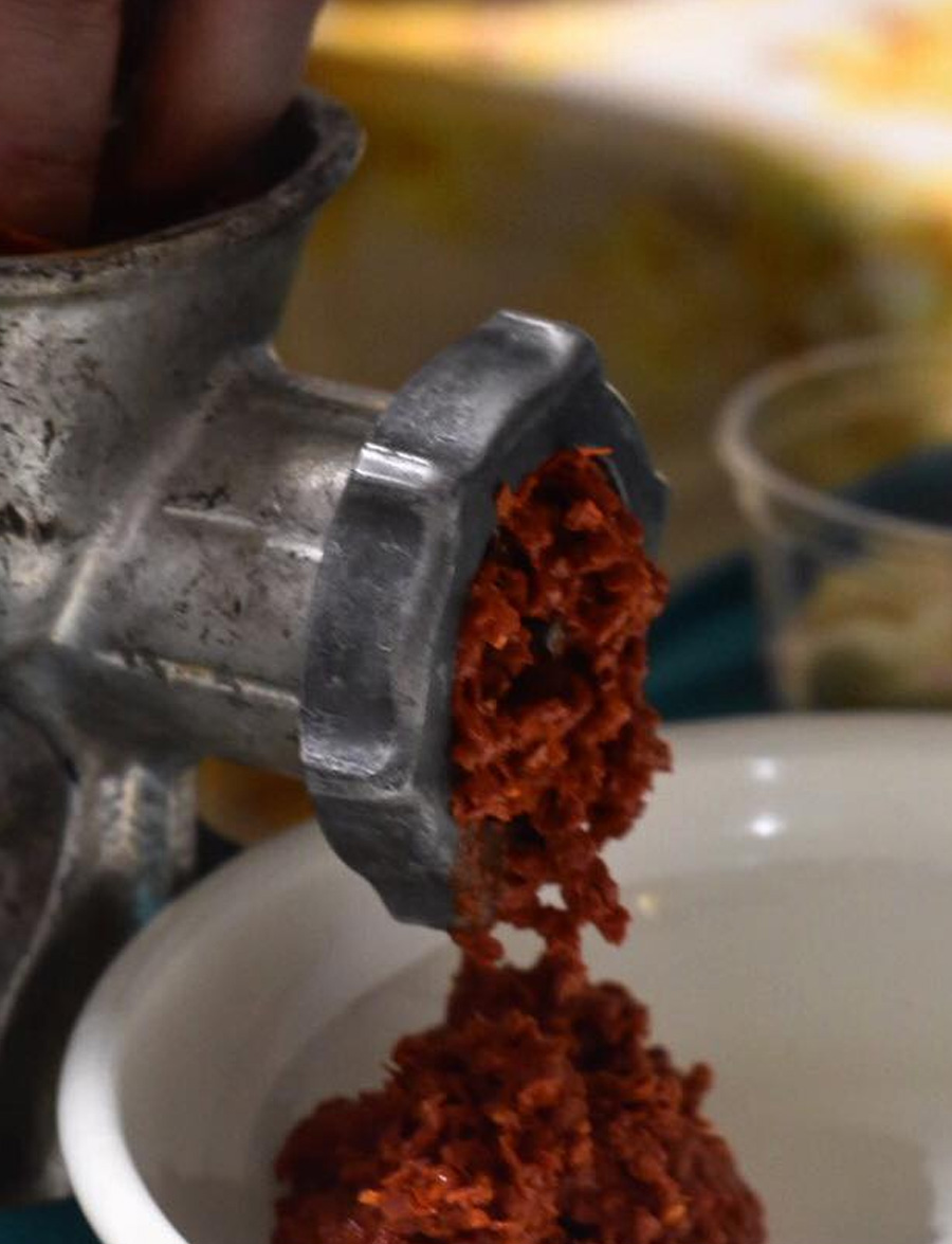 אם אין לכם מטחנת בשר- אפשר גם במעבד מזון, אבל המרקם שיתקבל יהיה קצת שונה.